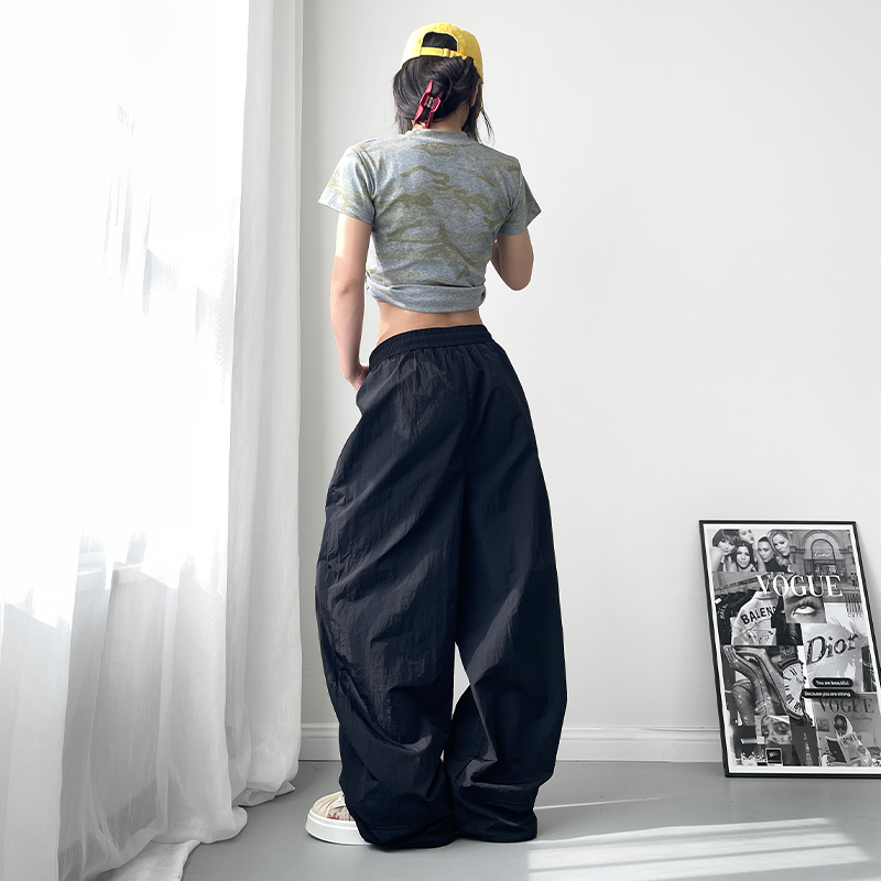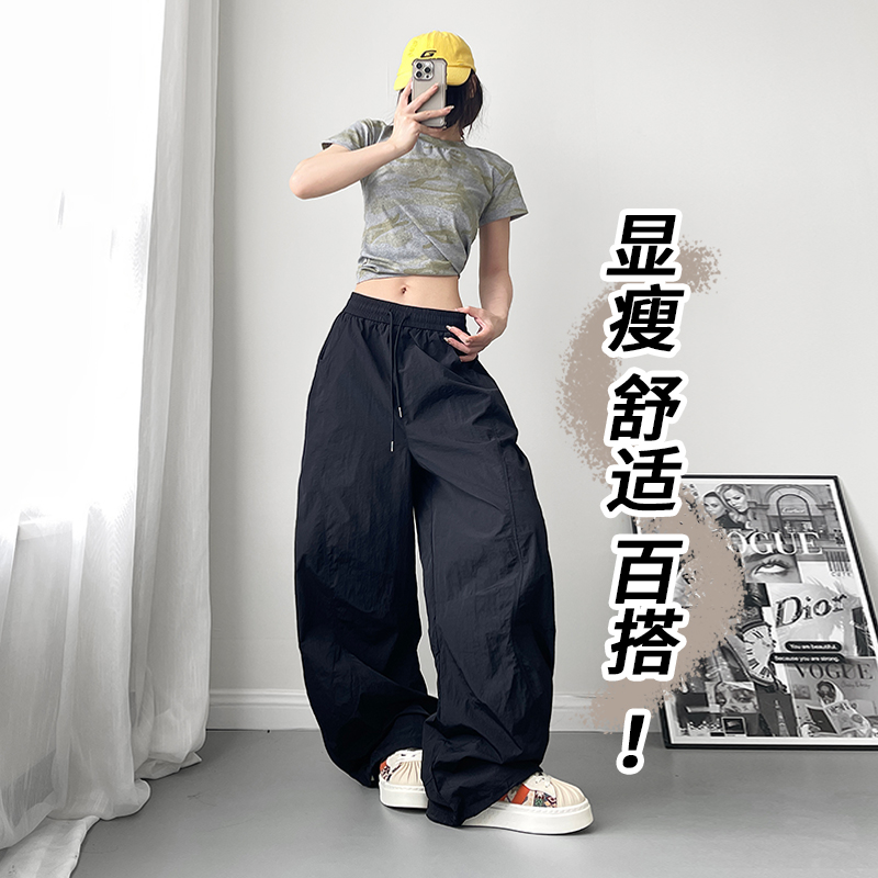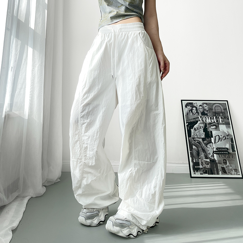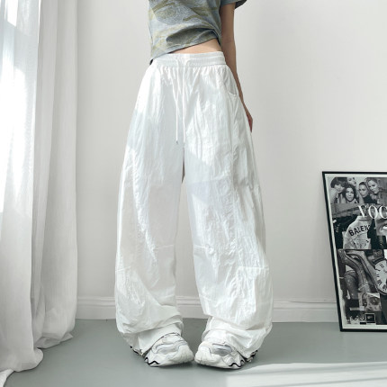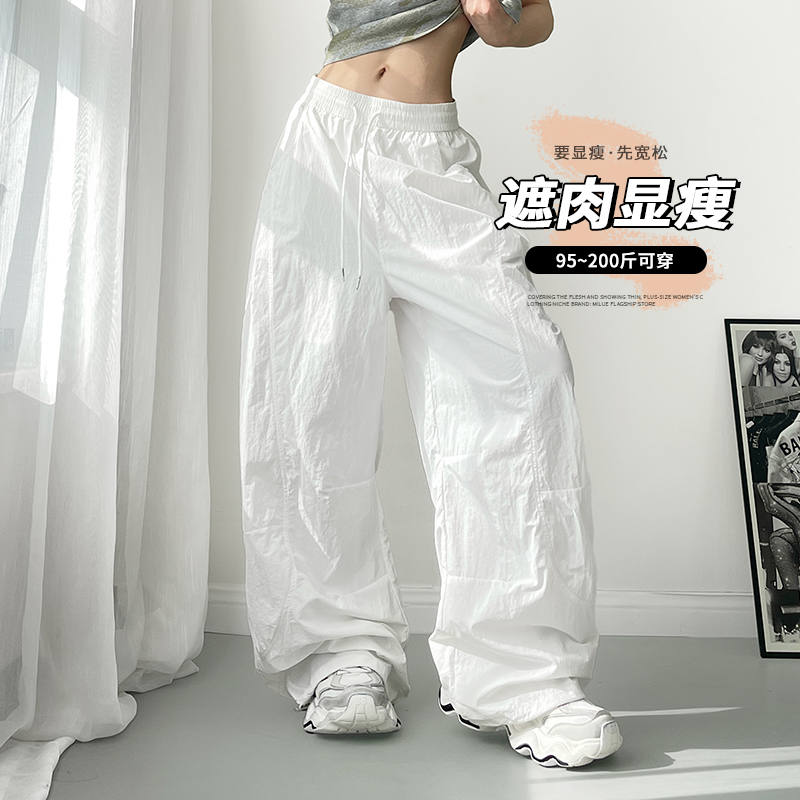 白色不透冰丝微褶速干裤女夏季大码胖mm酷飒街头跳舞运动阔腿裤子