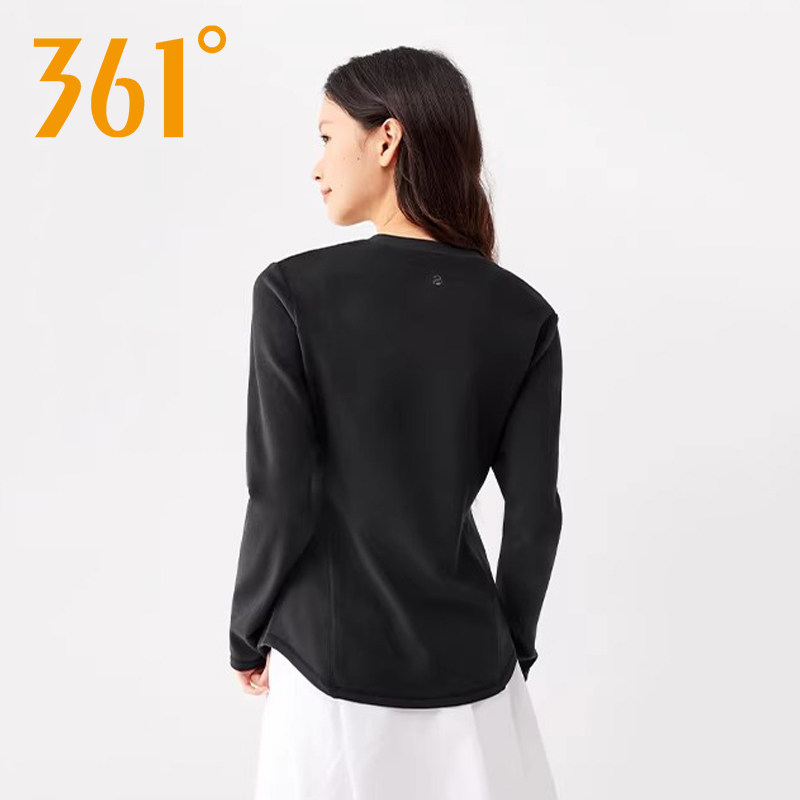 361度运动长袖T恤女2026春季新款跑步健身服训练修身女装圆领上衣
