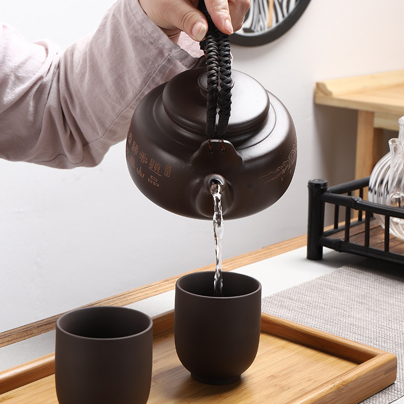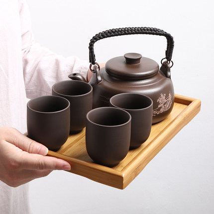 整套大号宜兴紫砂茶具套装大容量提梁壶带过滤内胆紫泥酒店泡茶壶