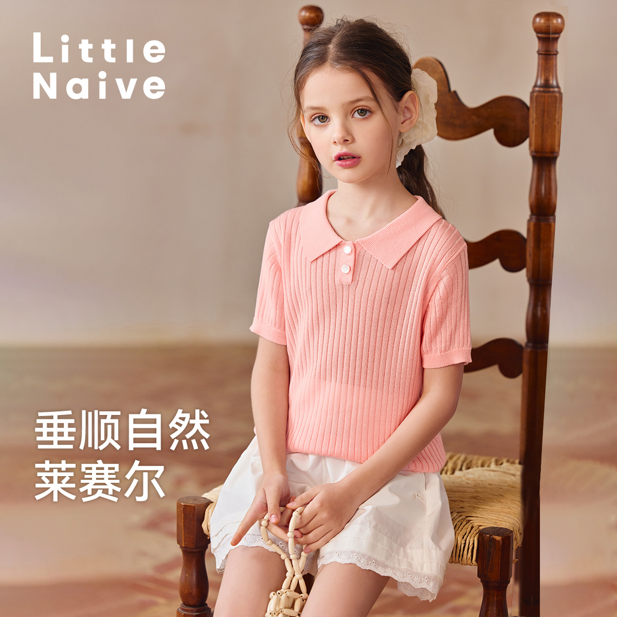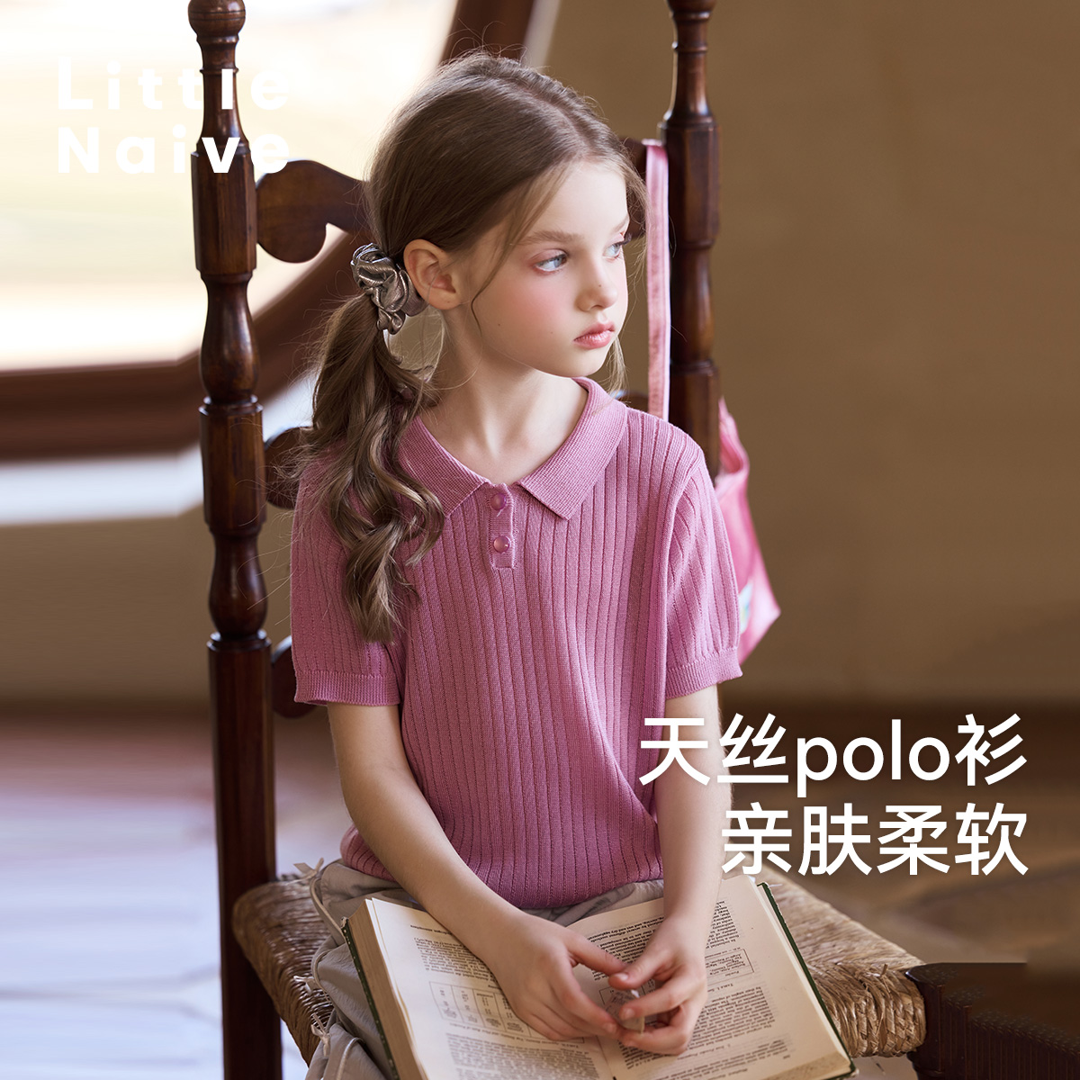 Little Naive短袖女童针织t恤夏季新款凉感上衣儿童翻领Polo衫