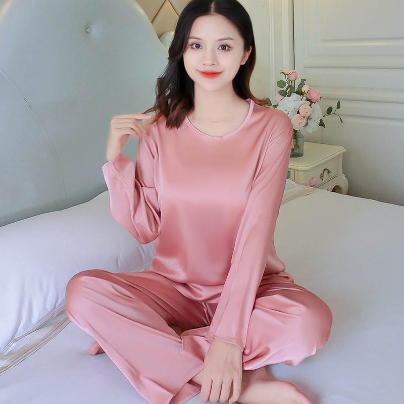 冰丝睡衣女夏季胖mm大码长袖圆领甜美薄款舒适春秋新款家居服套装