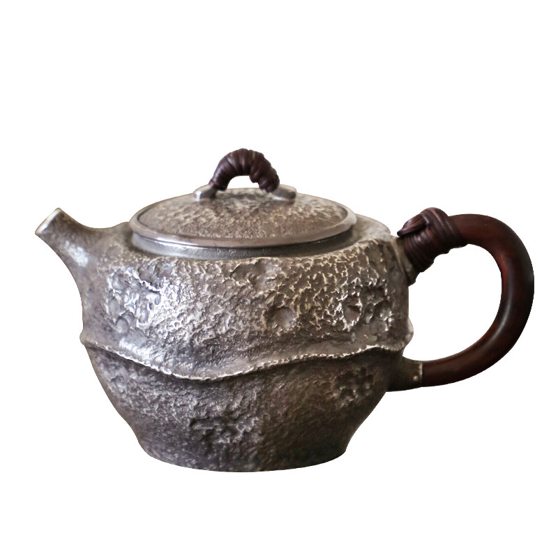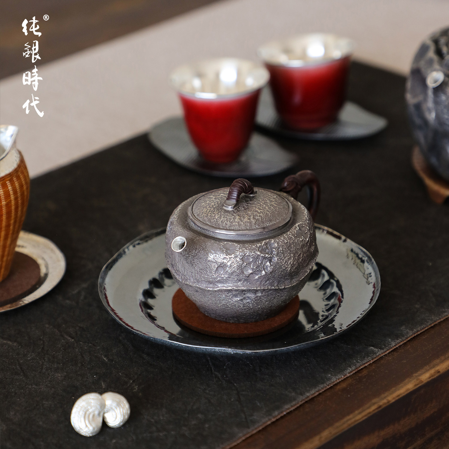 纯银时代 顽石纯银泡茶壶足银999纯手工银壶家用办公室中号200ml