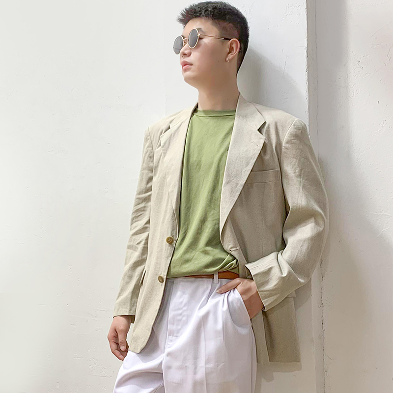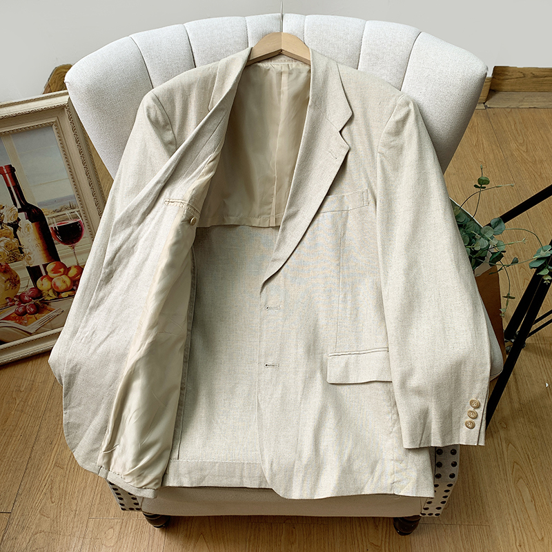 大厂老货!春装~年代复古大码男装亚麻西服外套/便服单西