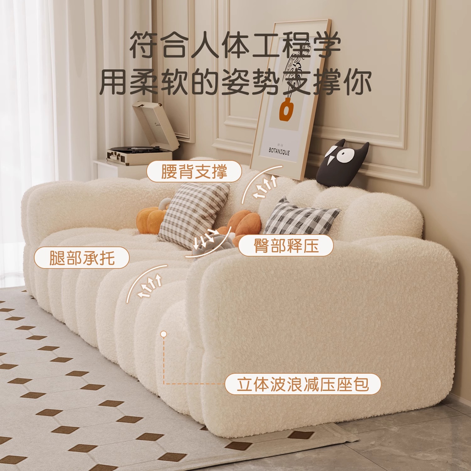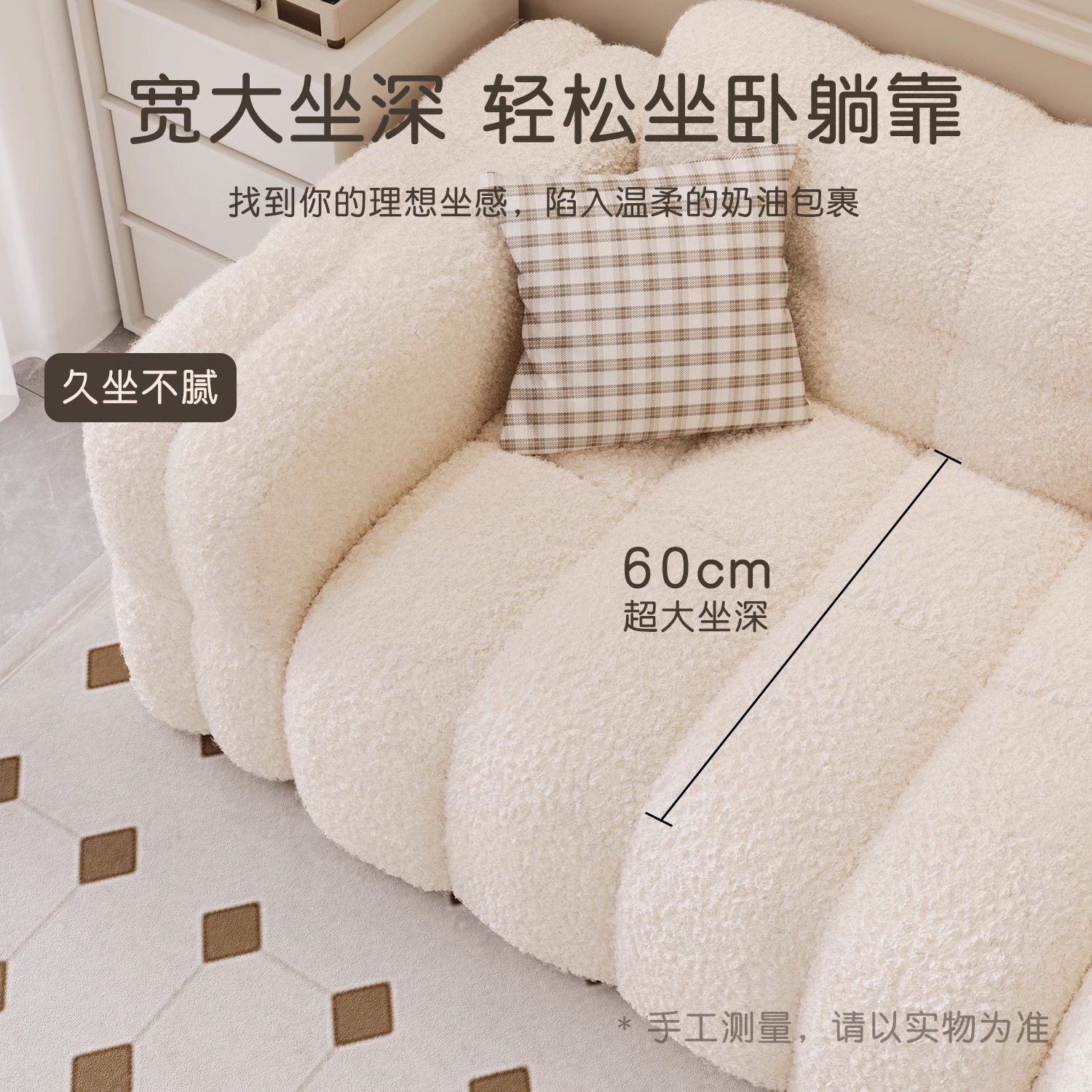 法式奶油风棉花糖沙发小户型客厅布艺双三人羊羔绒直排懒人小沙发