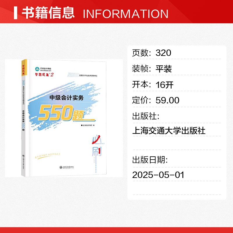 中级会计实务550题 2025 正保会计网校 编 注册会计师考试经管、励志 新华书店正版图书籍 上海交通大学出版社