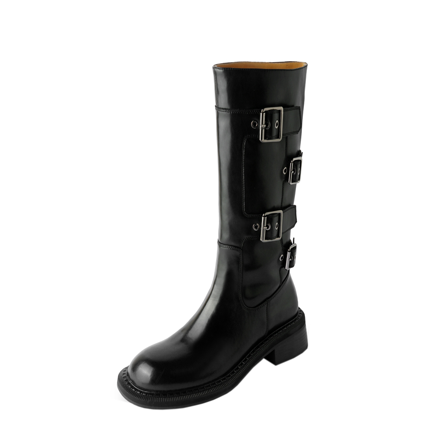 复古欧美中筒靴辣妹街头通勤拽酷百搭西部牛仔靴粗跟皮带扣时装靴