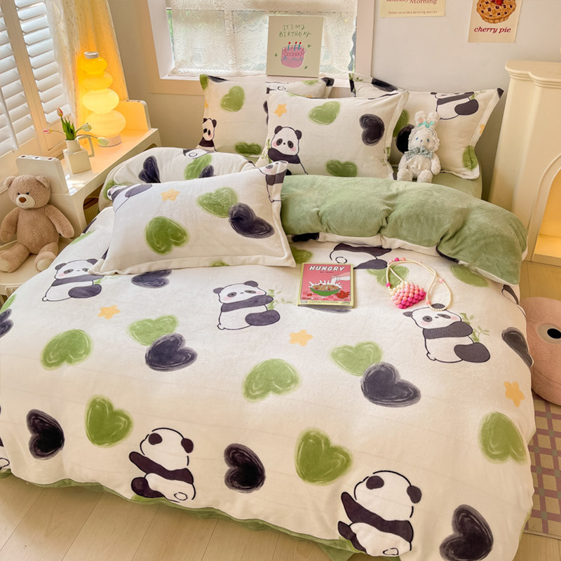 冬季双面加厚牛奶绒床上四件套