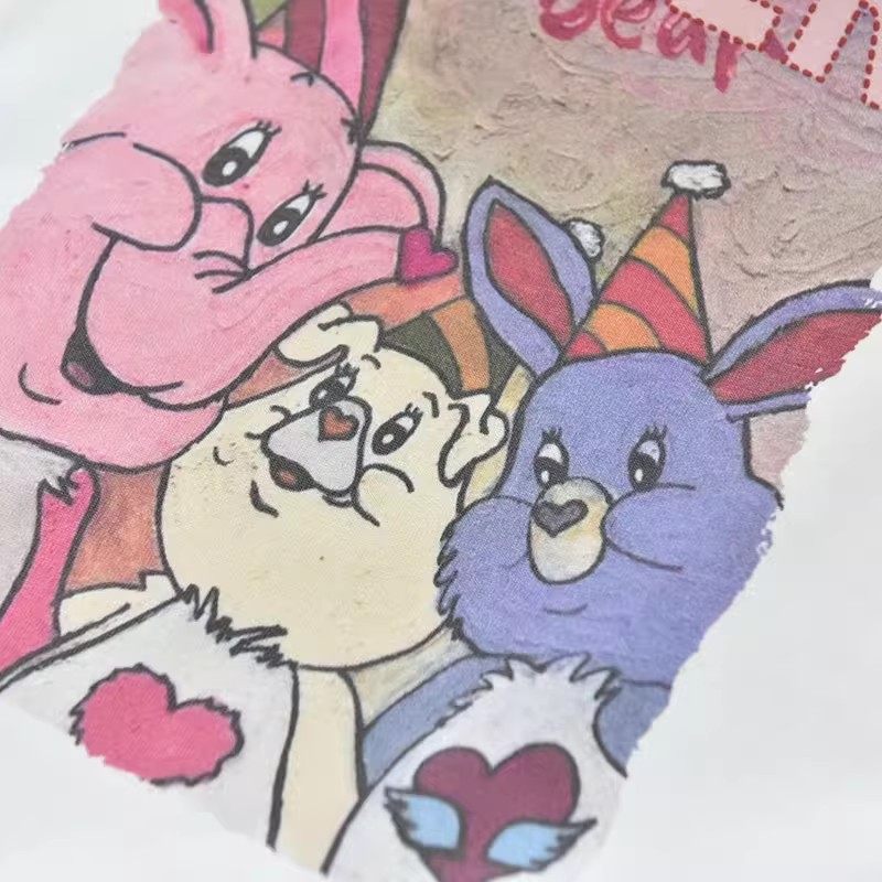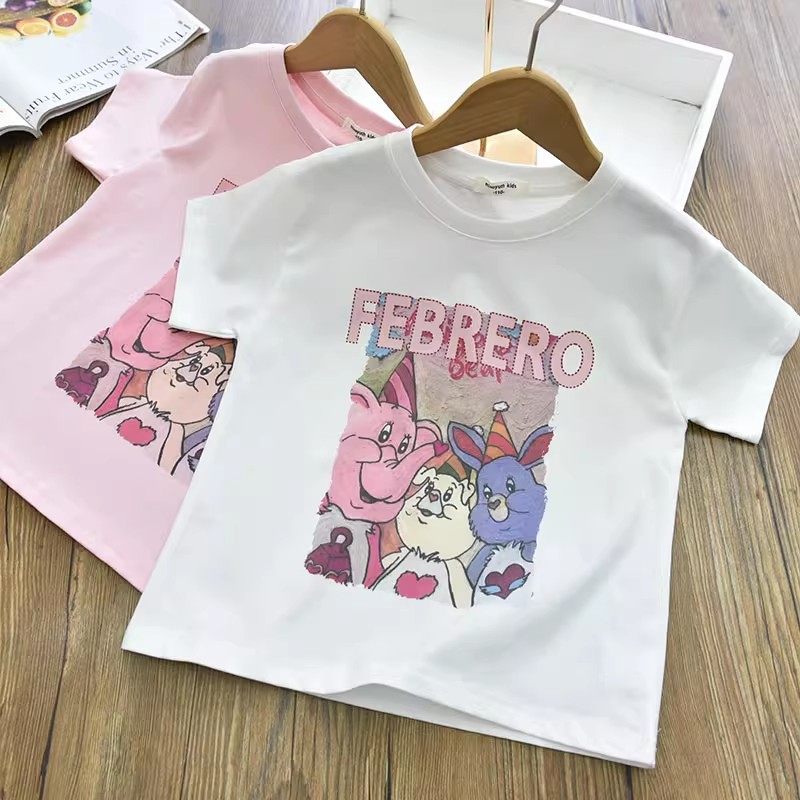 凉爽双纱棉|女童韩版洋气卡通印花短袖T恤 中大儿童夏季纯棉半袖