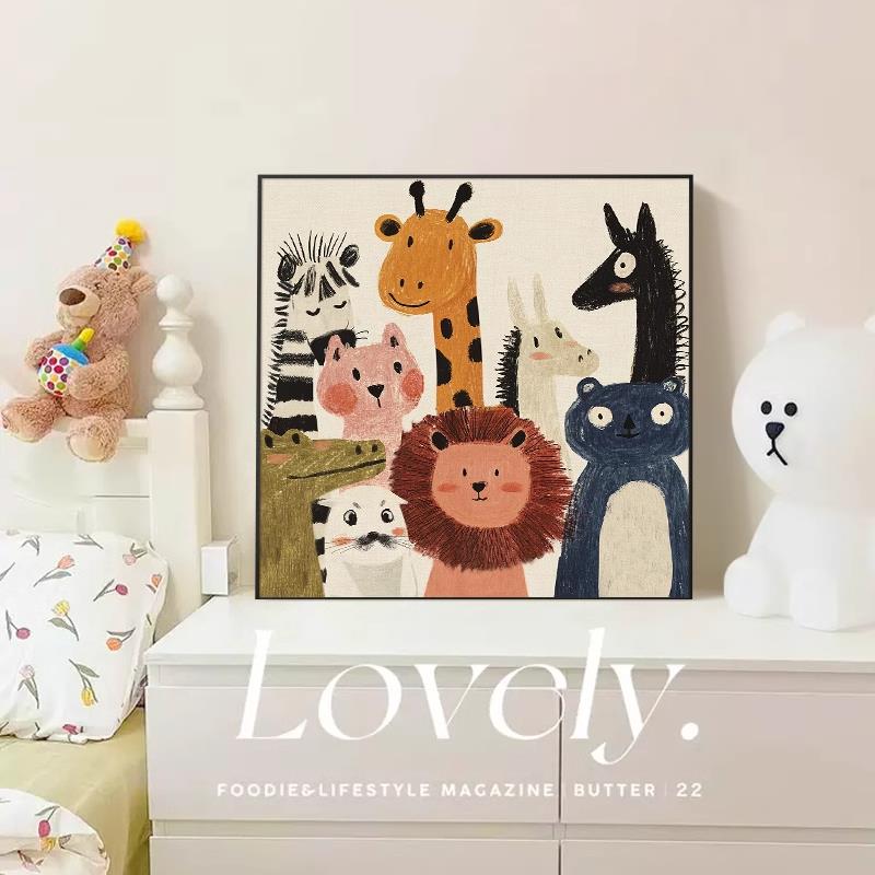 卡通动物儿童房装饰画可爱温馨卧室床头挂画北欧餐厅客厅墙面壁画