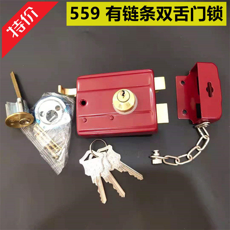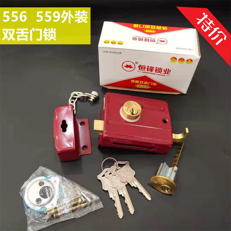 红钻556老式外装双舌门锁铁门锁木门锁固力防盗门锁【3月10日发