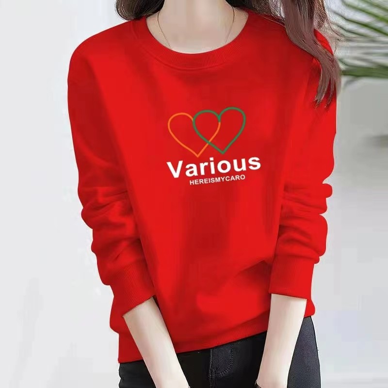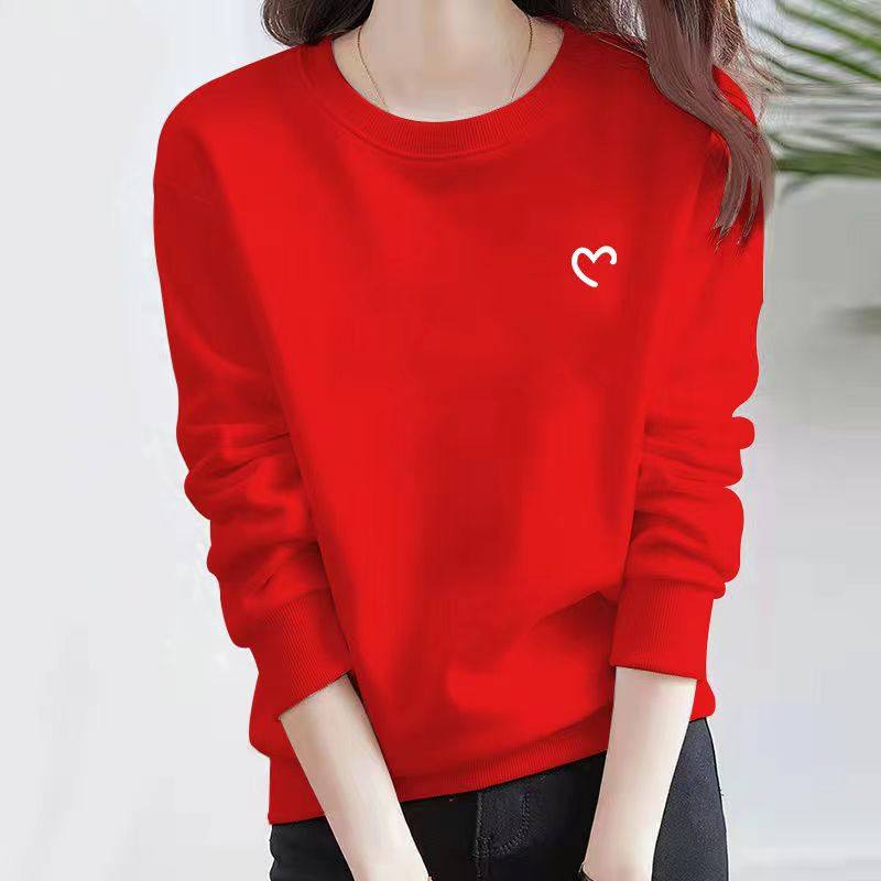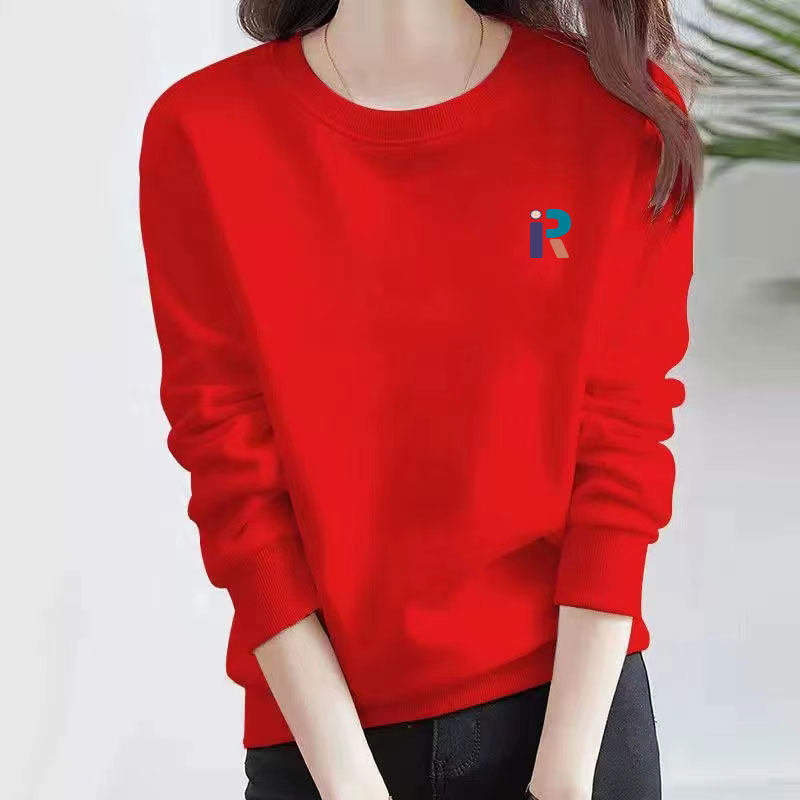 红色卫衣女春秋纯棉正肩宽松显瘦圆领套头衫加绒长袖妈妈装女上衣