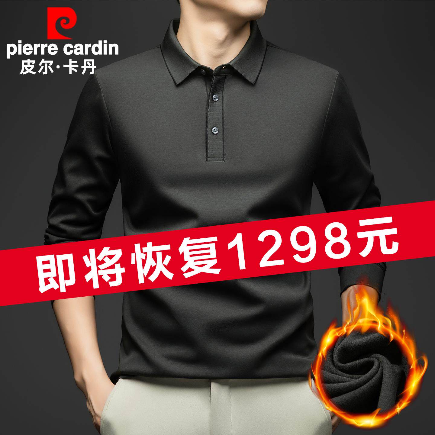 皮尔卡丹加绒厚长袖T恤男士2025秋冬新款商务休闲保暖POLO衫上衣