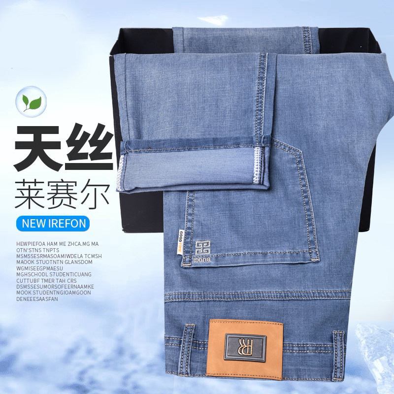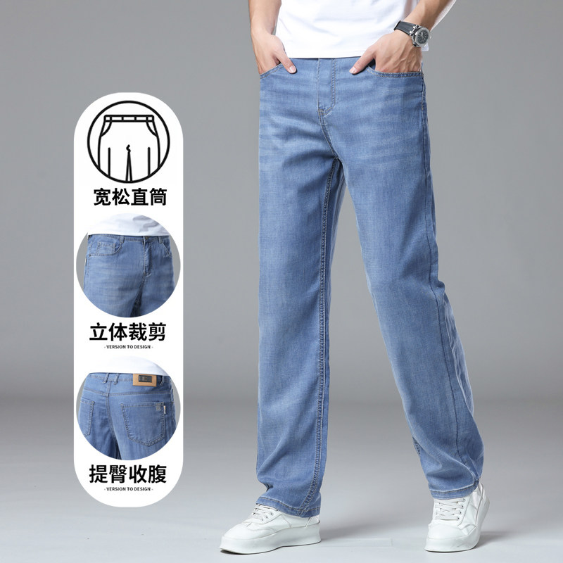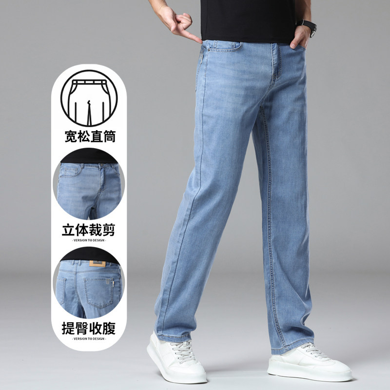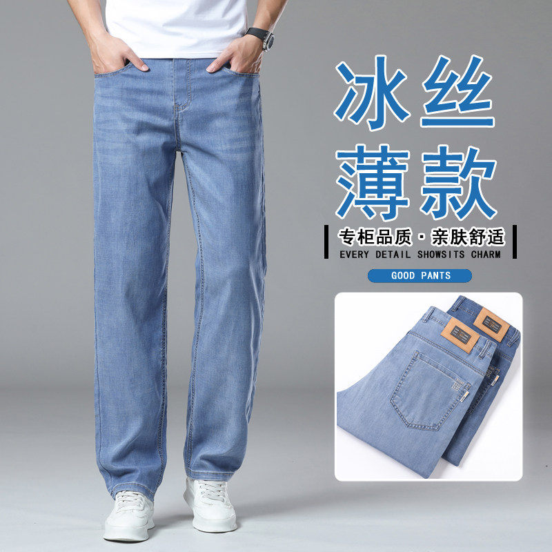 冰丝牛仔裤男夏季薄款修身直筒
