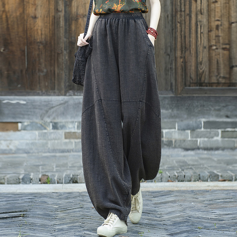 苎麻高腰复古zowesfun棉麻灯笼裤