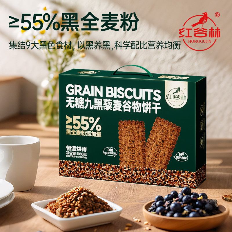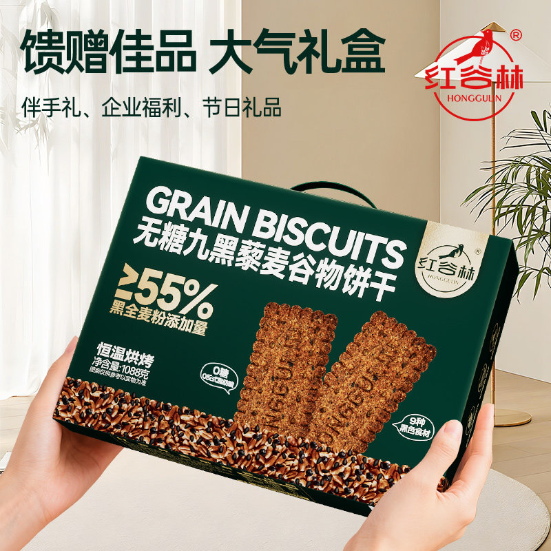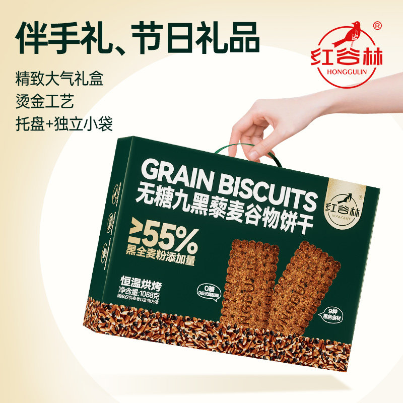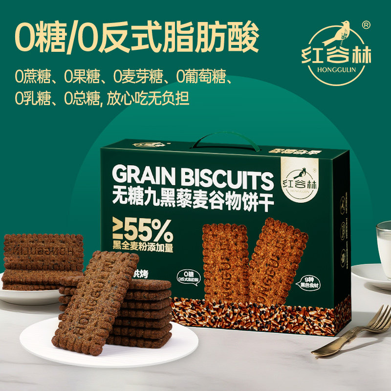 红谷林无糖9黑藜麦谷物饼干礼盒
