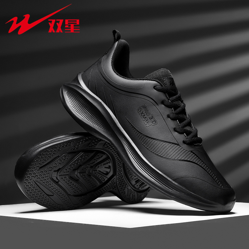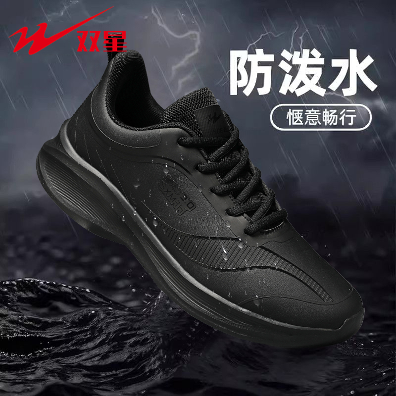 双星运动鞋男鞋秋冬新款黑色休闲鞋子男款爆款防泼水软底跑步鞋男