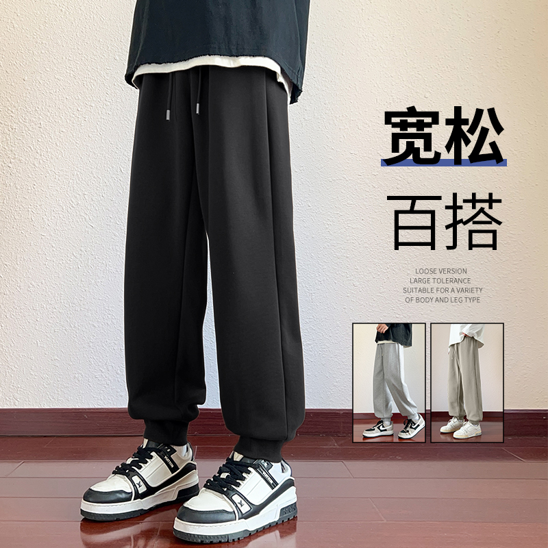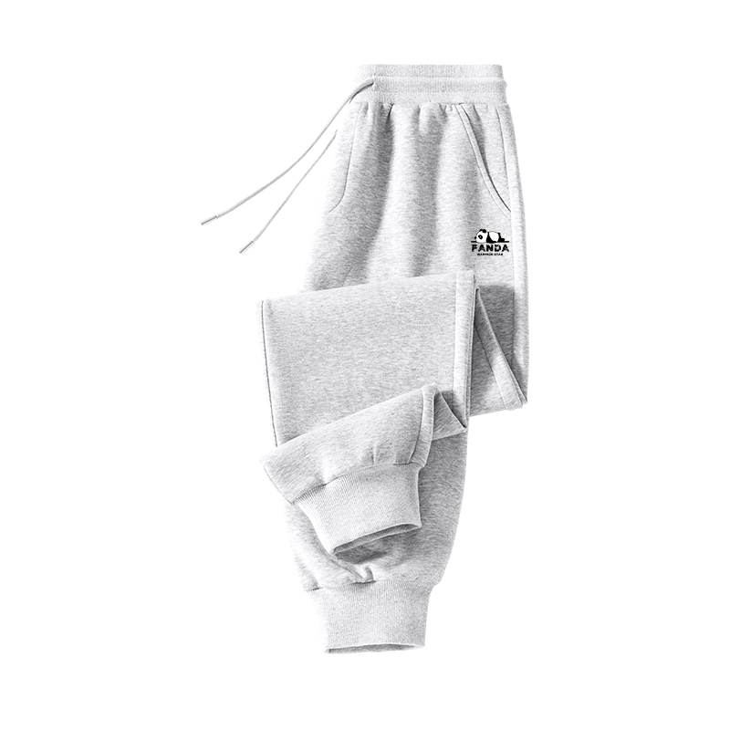 回力针织裤子男春秋重磅宽松运动直筒裤男生卡通熊猫阔腿休闲裤A