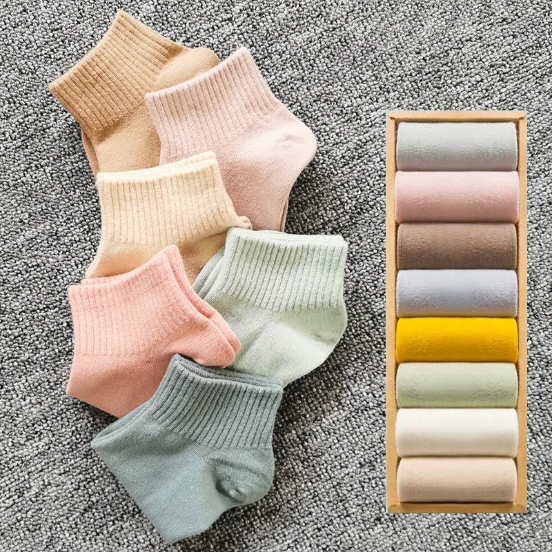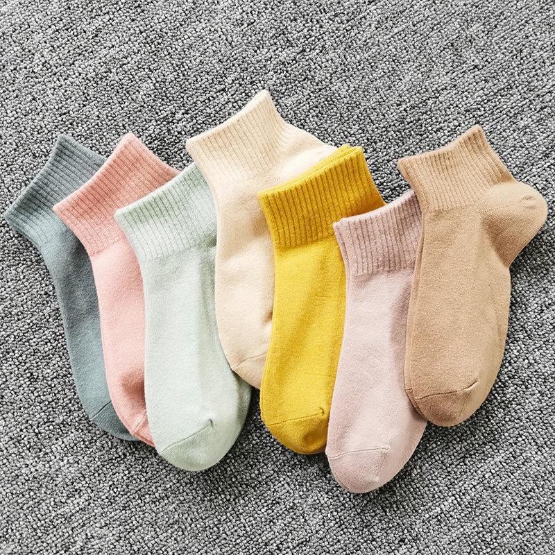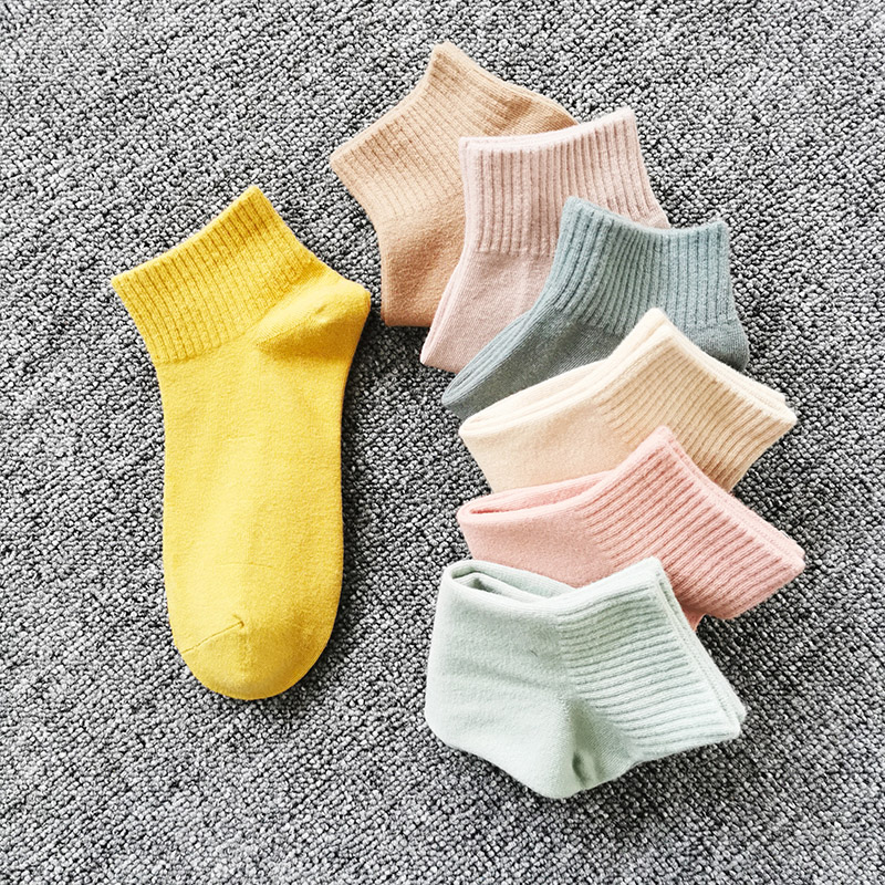 【7双纯棉】袜子女短袜韩国日系浅口棉袜纯色船袜春夏季可爱中筒