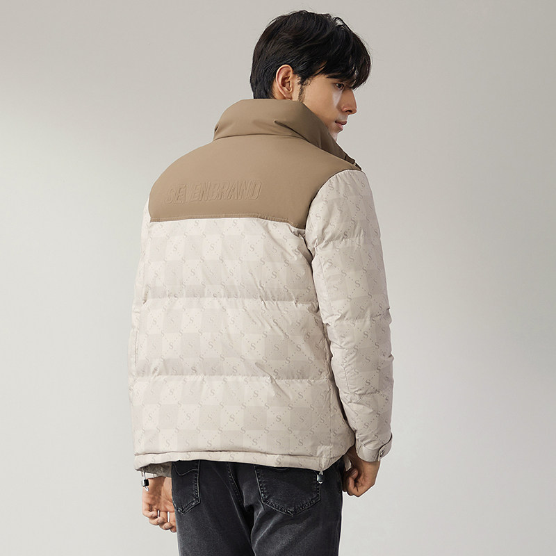 【鹅绒】柒牌立领三防羽绒服男2025冬季新款男士时尚印花保暖外套