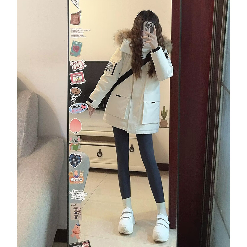 小个子学生时尚百搭工装羽绒派克服女冬季韩版宽松大毛领棉服外套