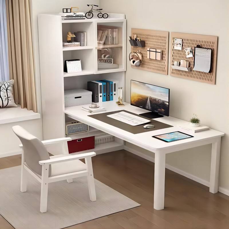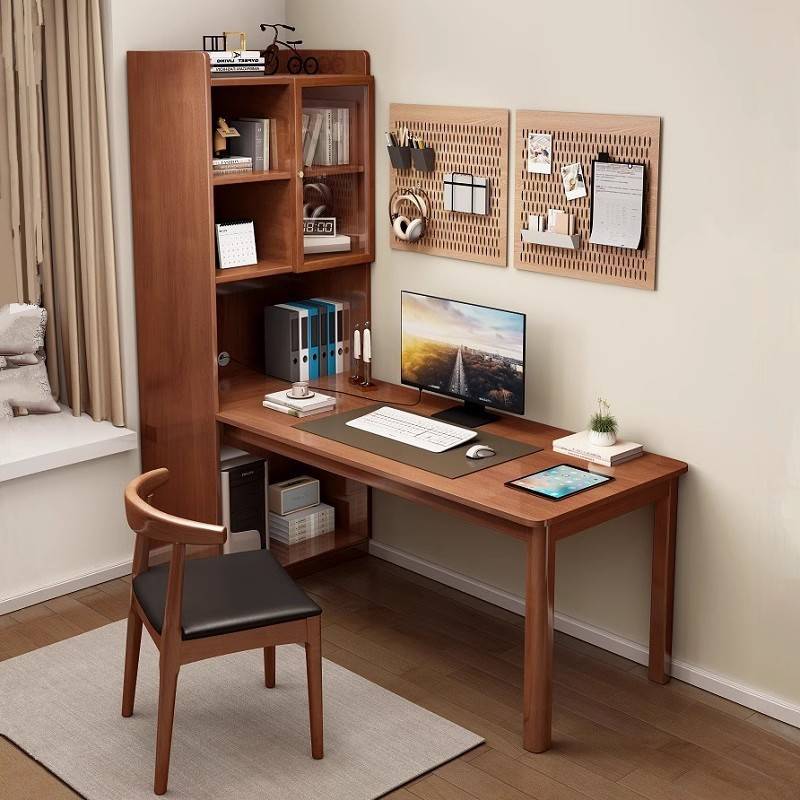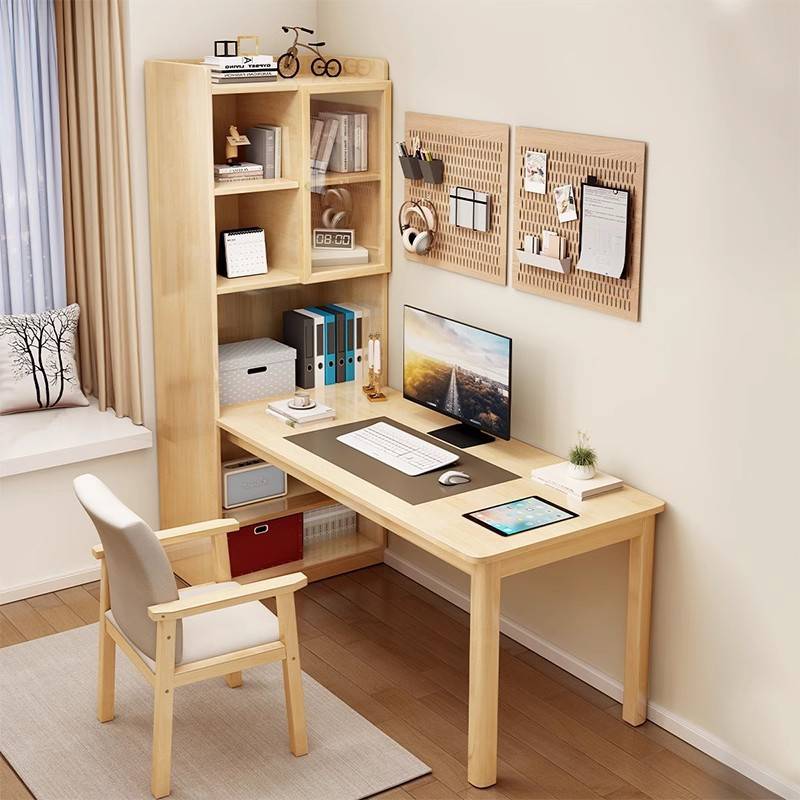 实木转角书桌书架组合带书柜一体现代简约卧室学习桌家用电脑桌椅