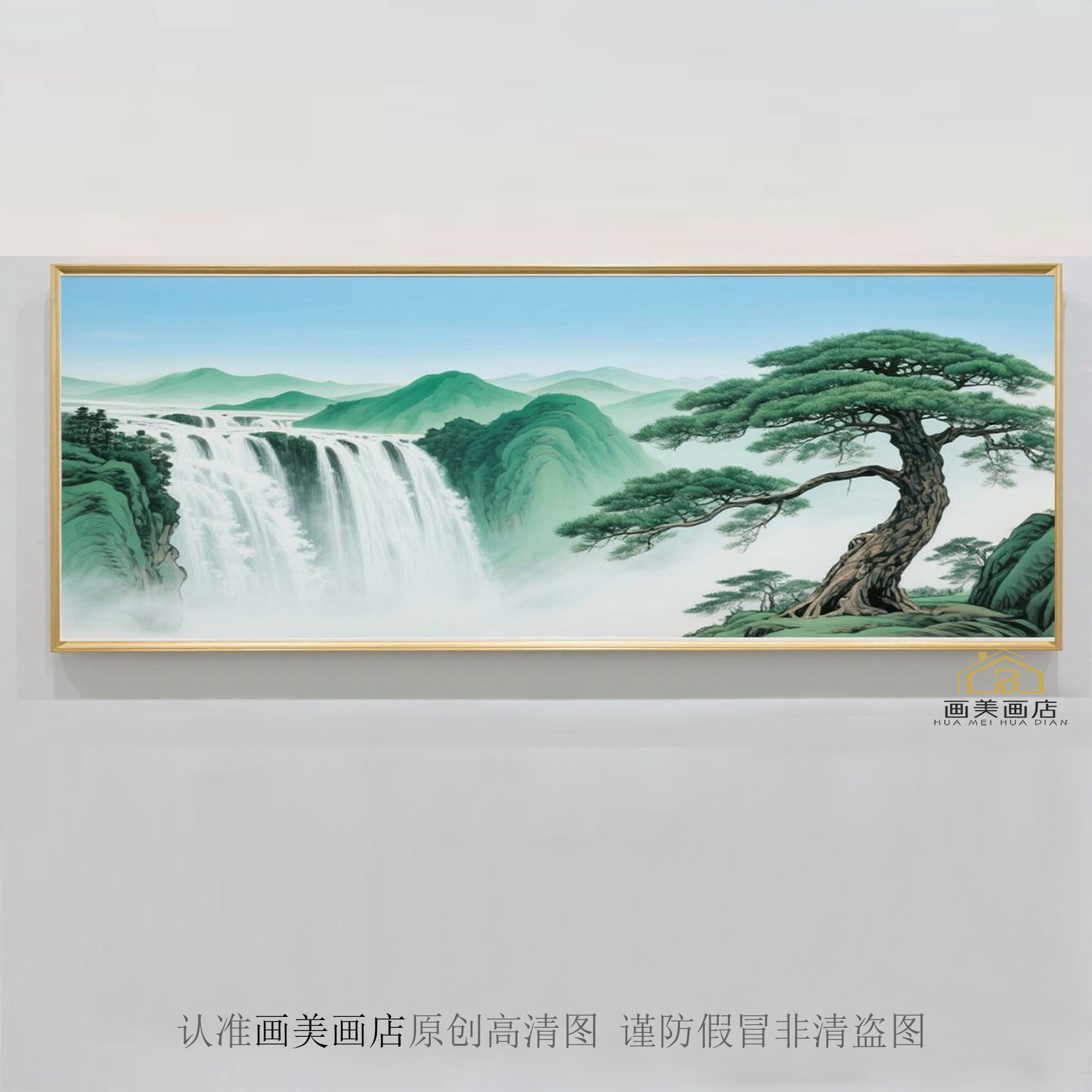 客厅餐厅床头山水挂画高清瀑布