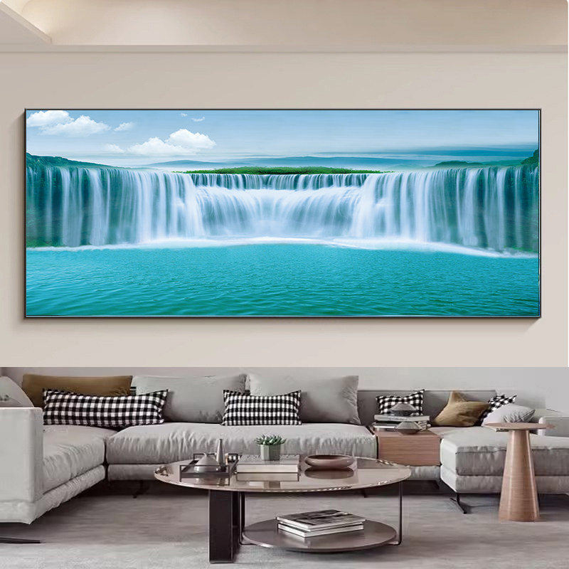 客厅装饰画高端瀑布山水画沙发背景墙轻奢晶瓷餐厅床头风景挂画