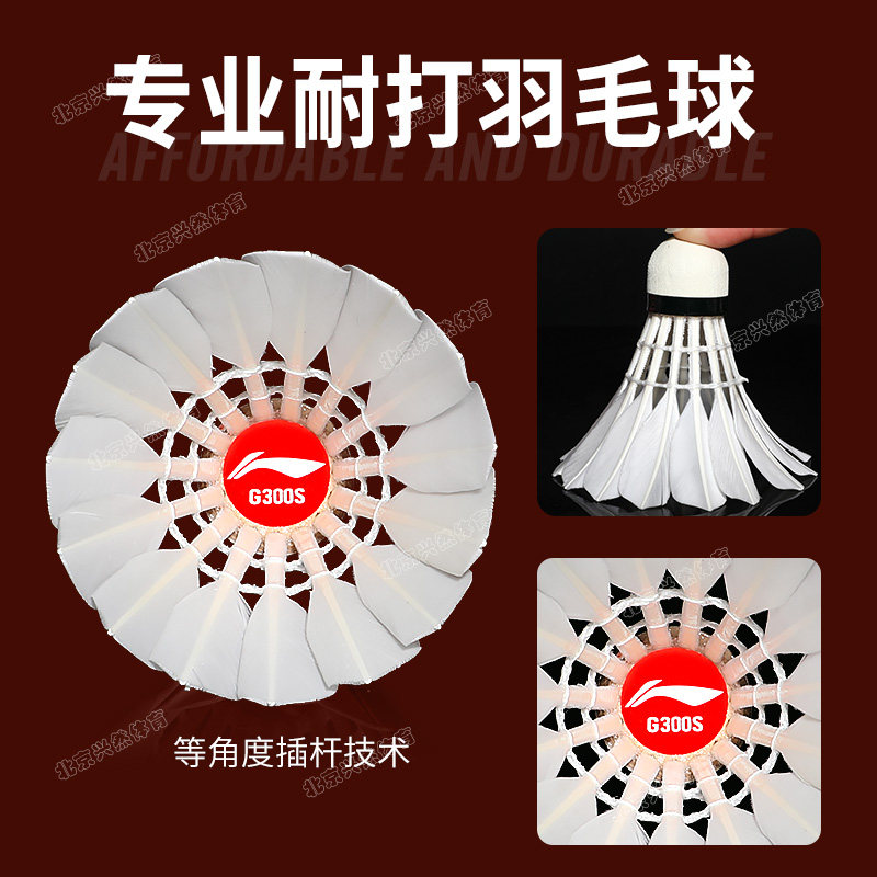 李宁G300S羽毛球耐打飞行稳定鹅毛球12只装专业球馆训练比赛用球
