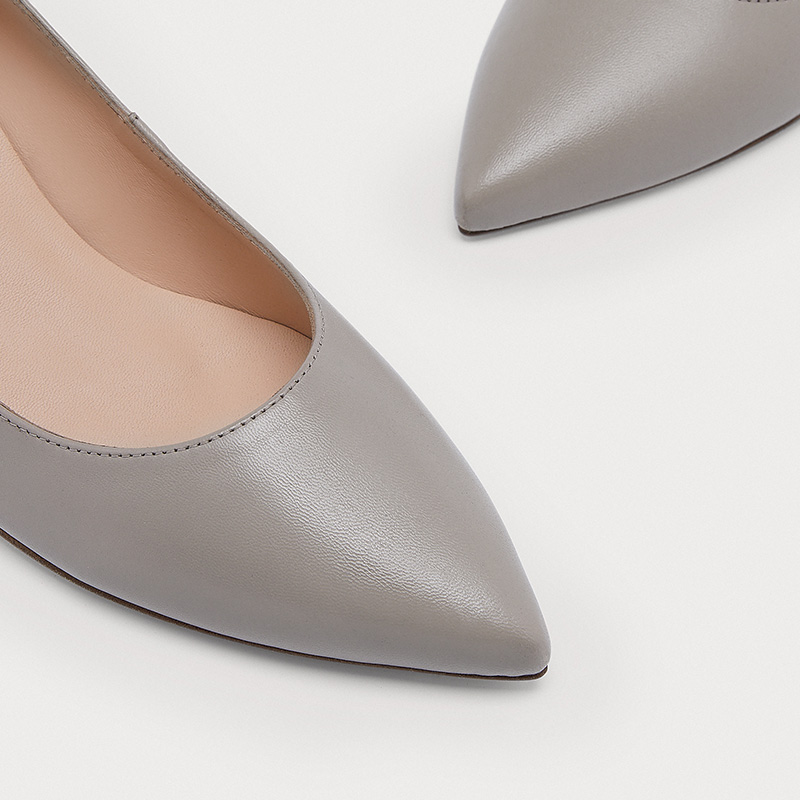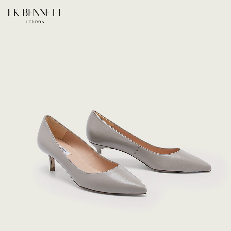 【职场通勤】lkbennett灰色真皮低跟高跟鞋女尖头小跟单鞋羊皮革