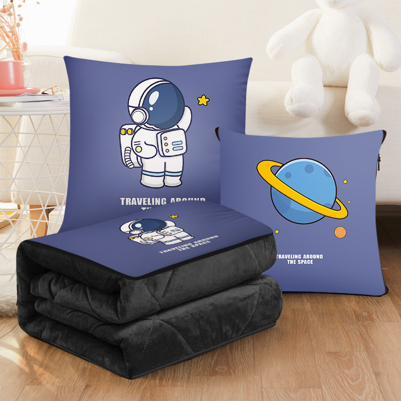 冬季加厚b珊瑚绒抱枕被子两用汽车内车载办公室枕头毛毯二合一定
