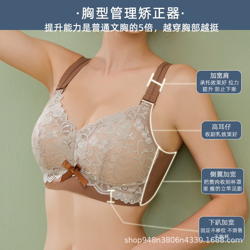 全罩杯大码胸罩大胸显小无钢圈乳胶文胸女舒适调整型侧收副乳内衣