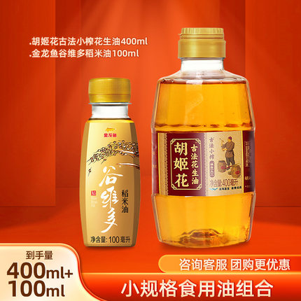 胡姬花古法小榨花生油400ml+稻米油100ml组合 小瓶食用油【HD】