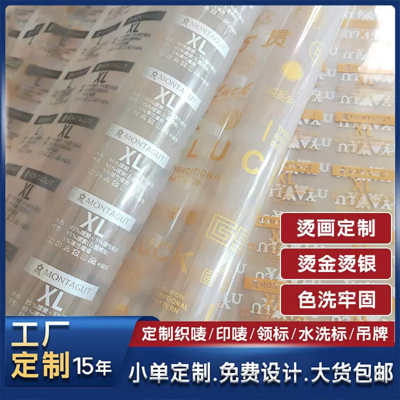定制保暖内衣服装烫画贴画热转印白墨柯式烫画洗水标防升华订制