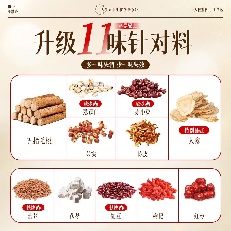 南京同仁堂五指毛桃赤小豆人参茯苓薏米麸炒熟祛除湿健气脾养生茶