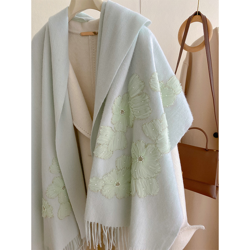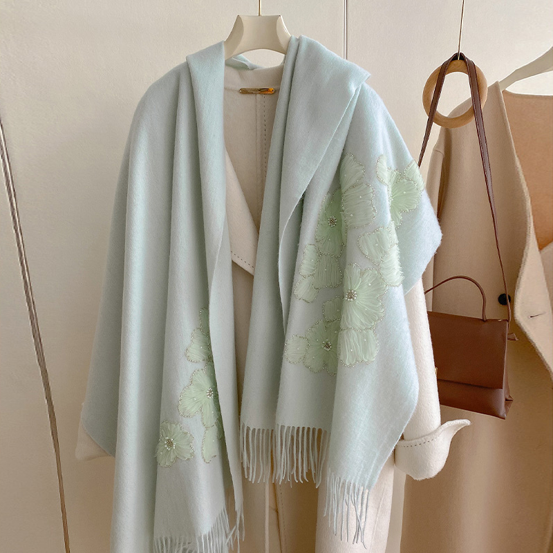 绿色羊毛围巾羊绒感旗袍斗篷披肩
