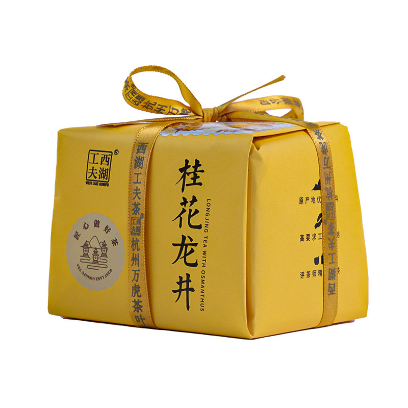 西湖工夫杭州桂花龙井茶叶自己喝桂花茶香茶叶纸包送人自饮125g