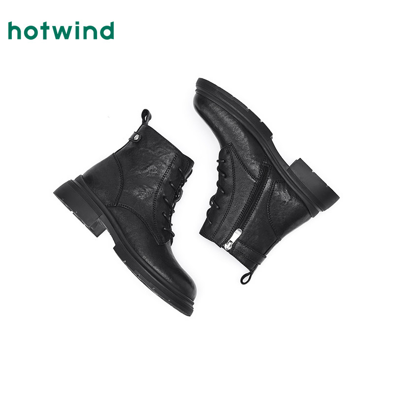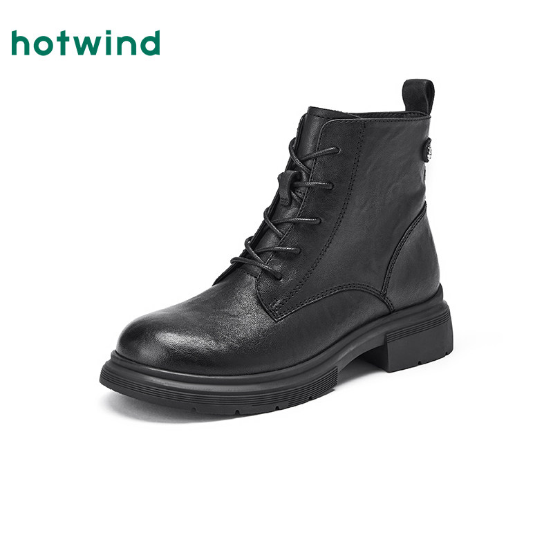 热风黑色马丁靴女款2025年冬季新款休闲短靴简约女靴子百搭女鞋
