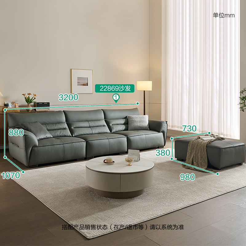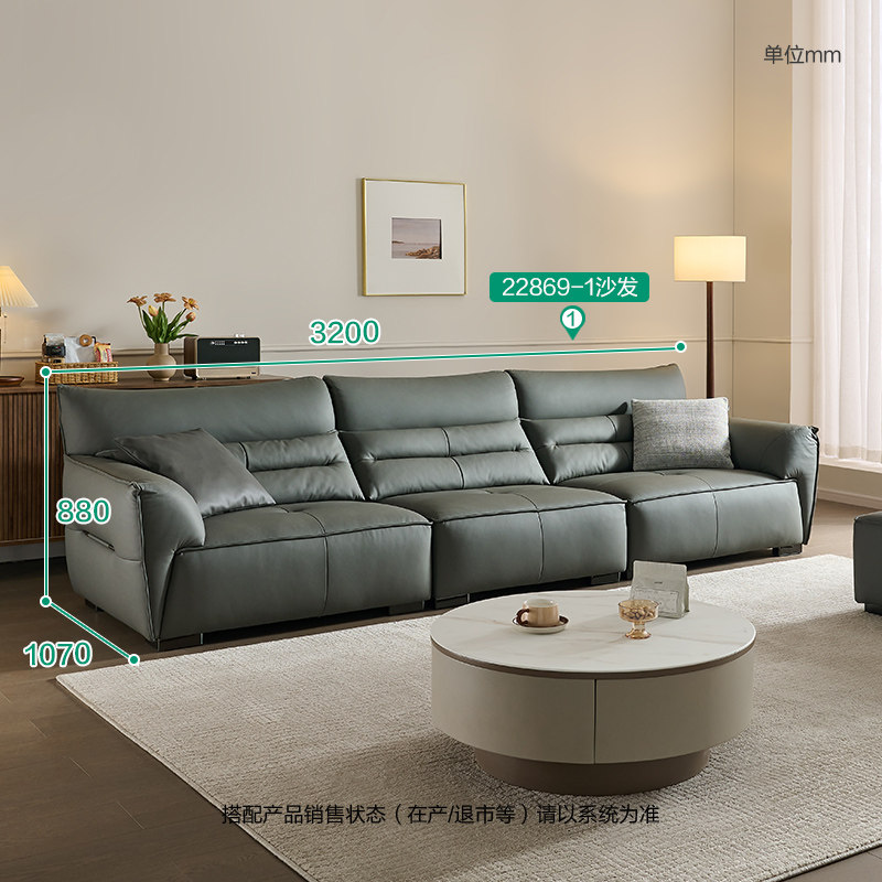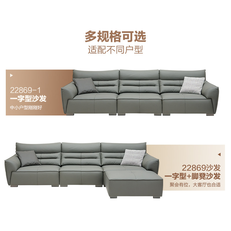 全友家居正品 门店同款 时尚简约 22869 一字型直排真皮皮艺沙发