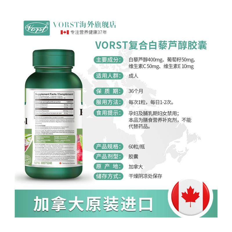 VORST加拿大复合白藜芦醇精华胶囊葡萄籽花青素焕活肌肤皙颜抗糖