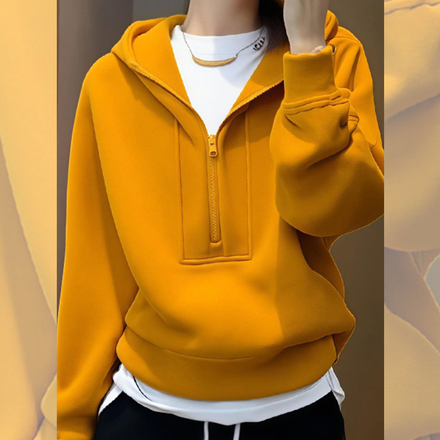 姜黄色调~2026超火减龄春款半拉链连帽卫衣女设计感小众休闲上衣