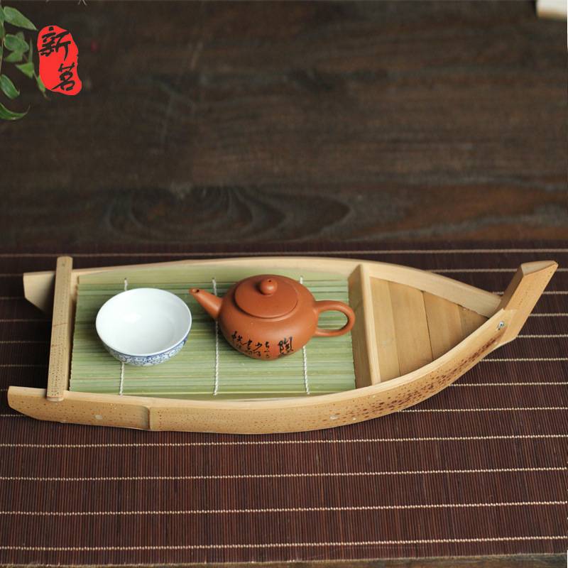 船形竹制茶盘 储水式茶台 托盘 壶承 茶道配件小茶盘 竹茶点盘