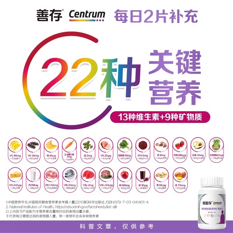 银善存中老年男女士多种复合维生素160片女性b族维生素ve官方正品