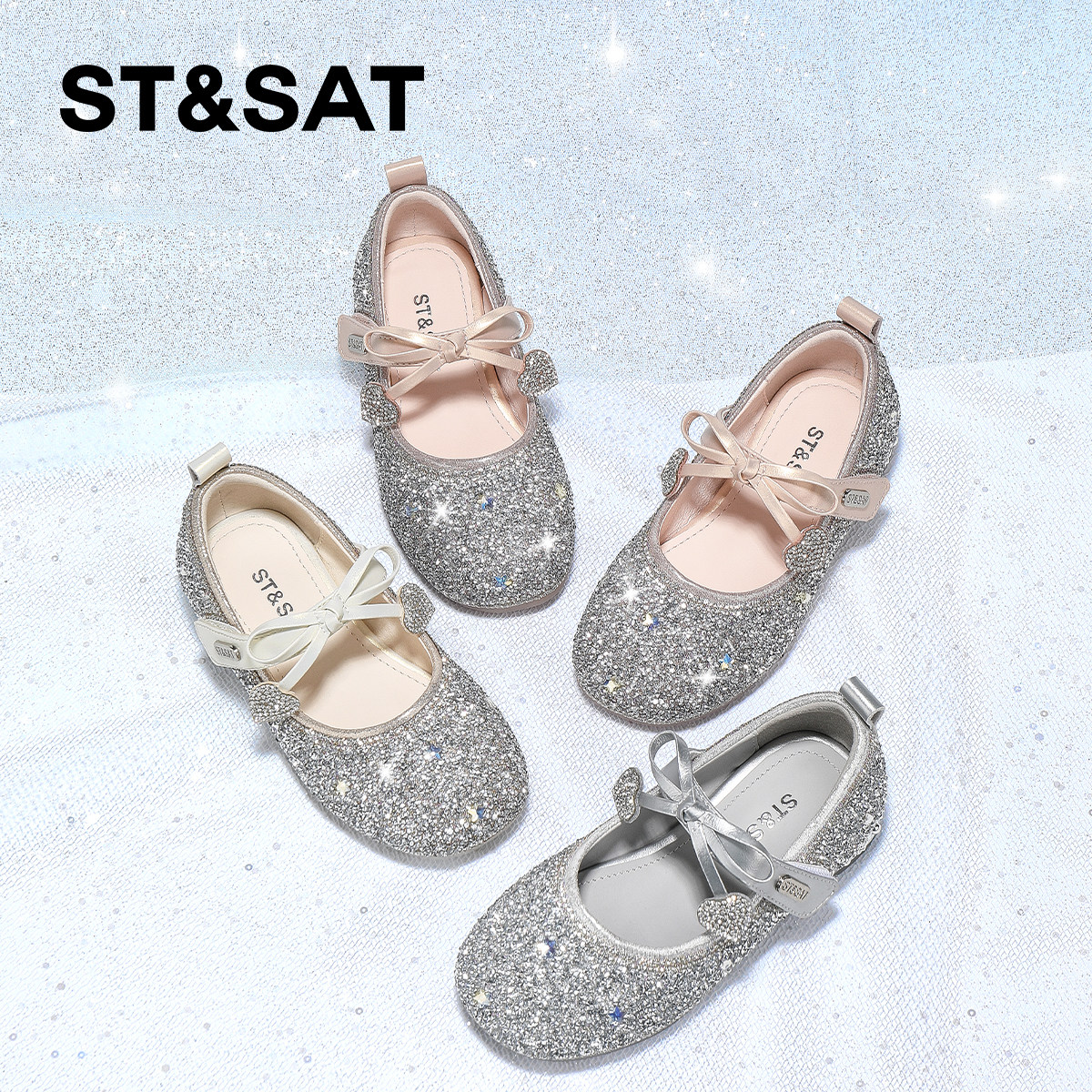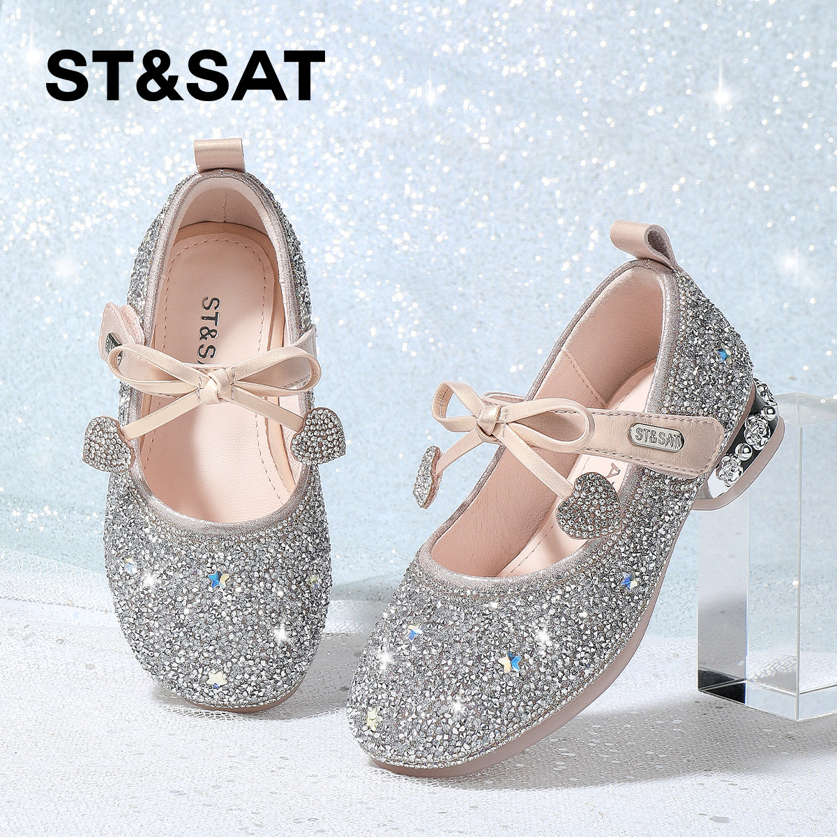 星期六童鞋女童高跟水晶公主鞋春秋季新款女孩公主鞋儿童演出鞋子