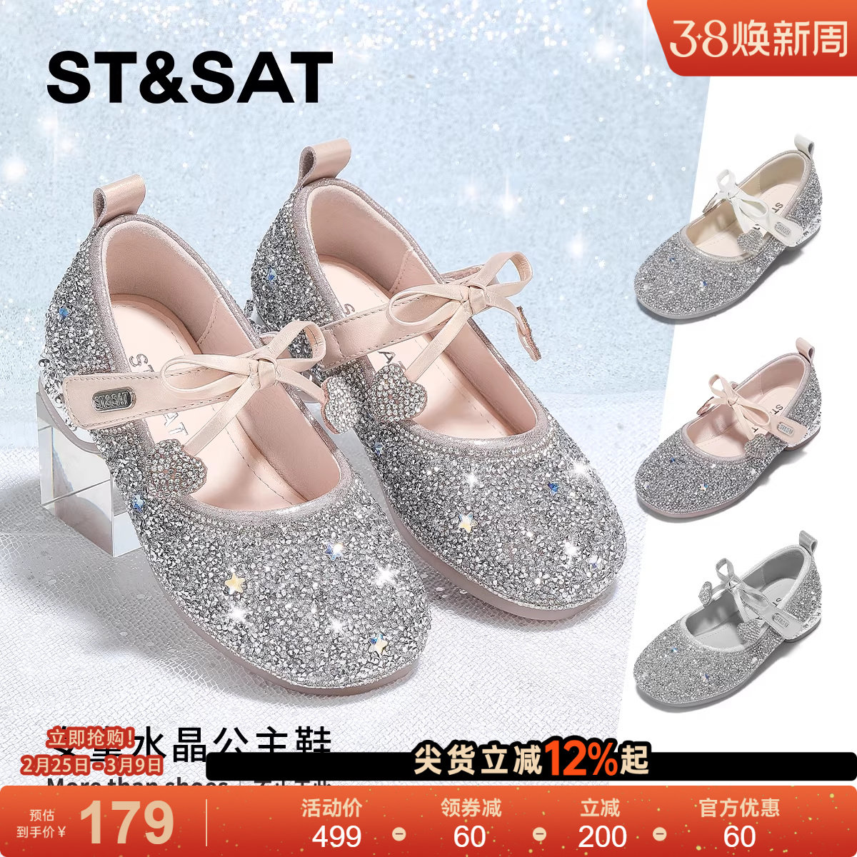 星期六童鞋女童高跟水晶公主鞋