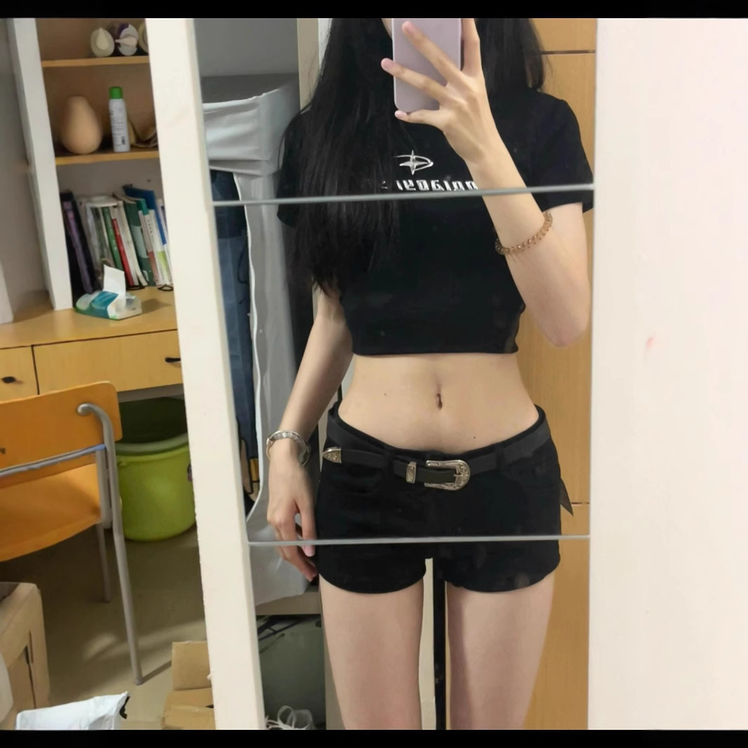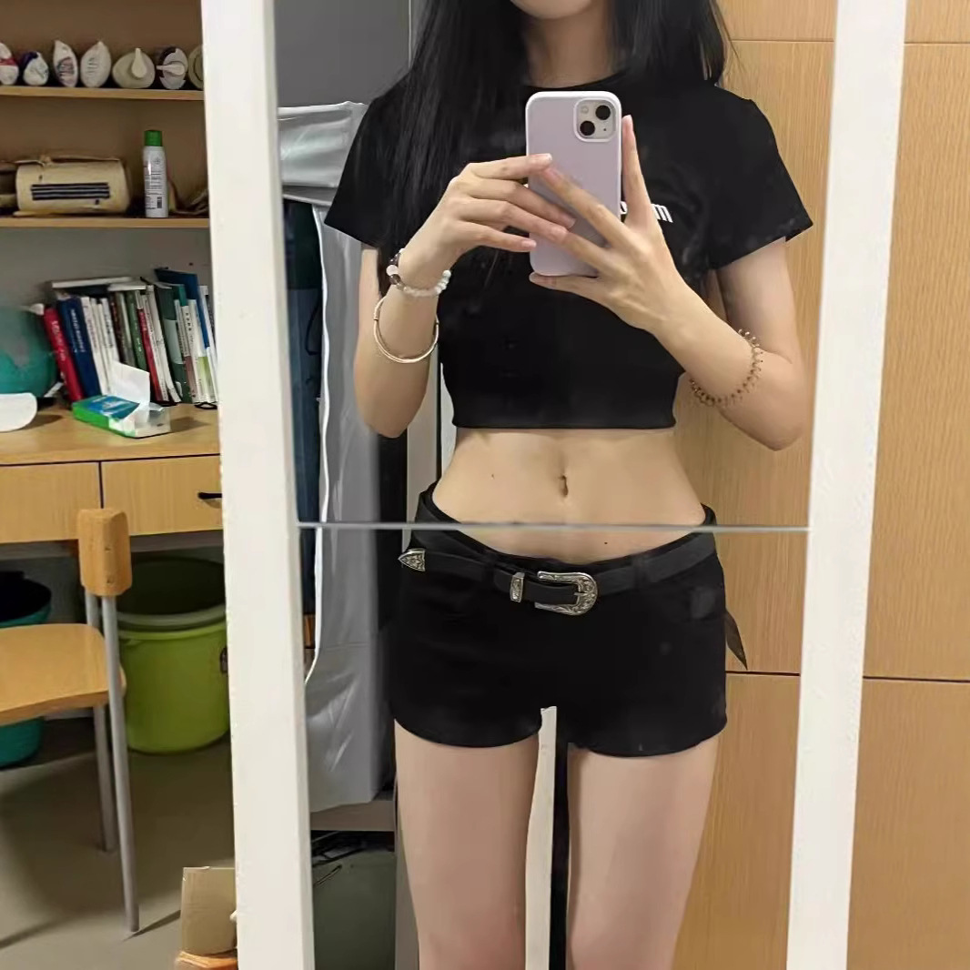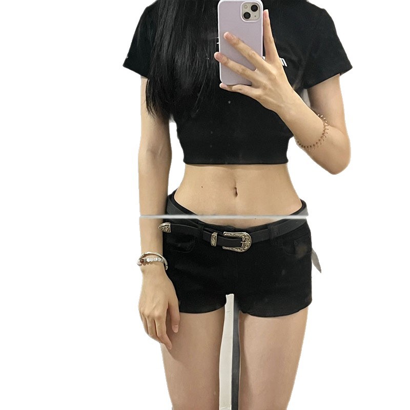现货2025夏季新款高腰牛仔短裤女紧身显瘦包臀裤黑色热裤外穿短裤