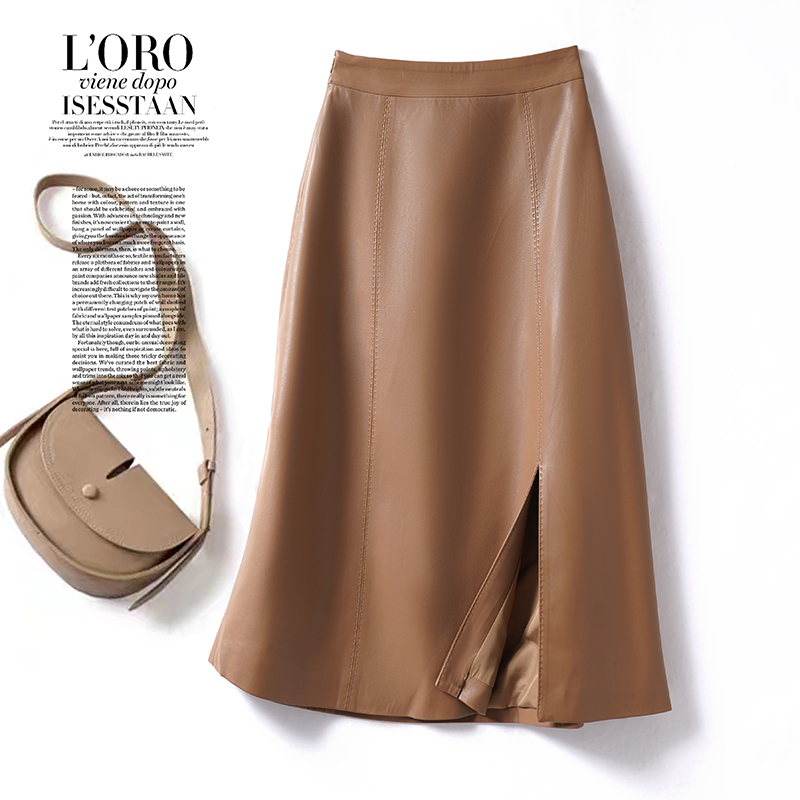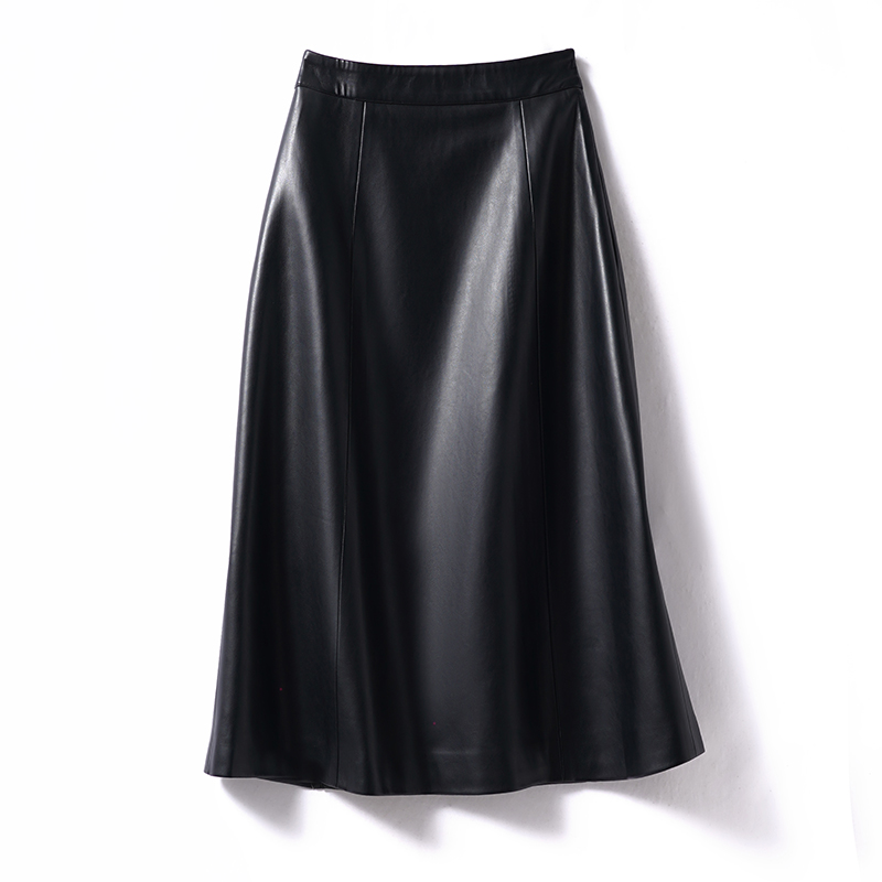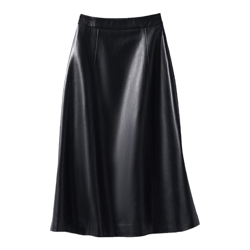 海宁真皮皮裙半身裙女中长款2025年秋季新款高腰显瘦A字过膝长裙