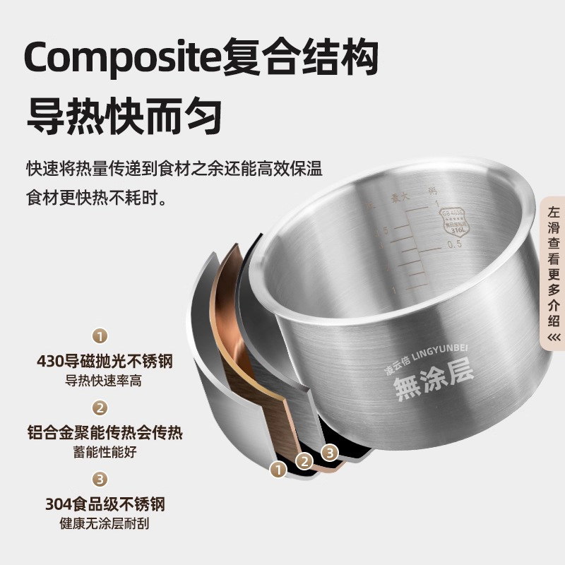 凌云倍316L不锈钢适用利仁迷你小型电压力锅1.8L升内胆G-51锅配件