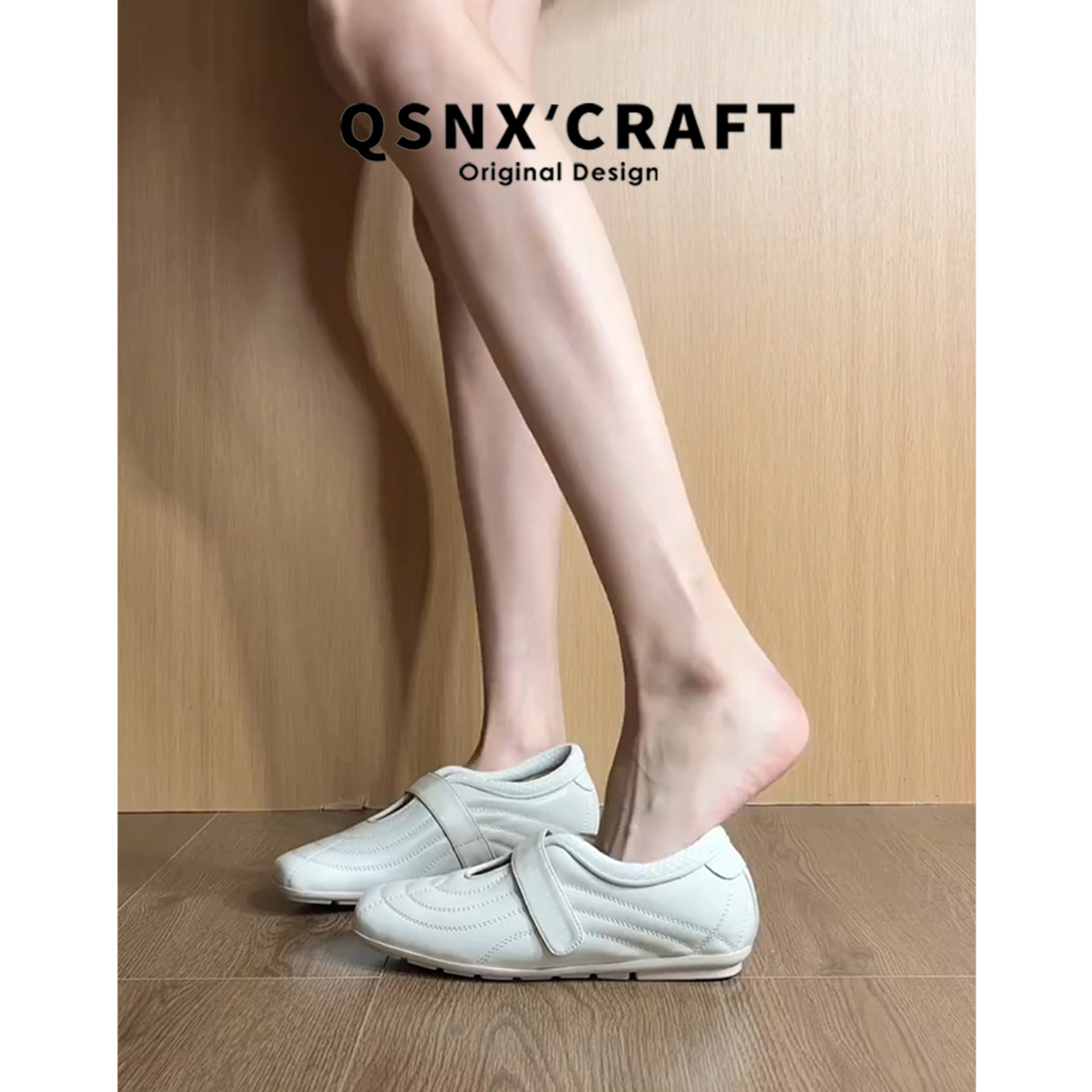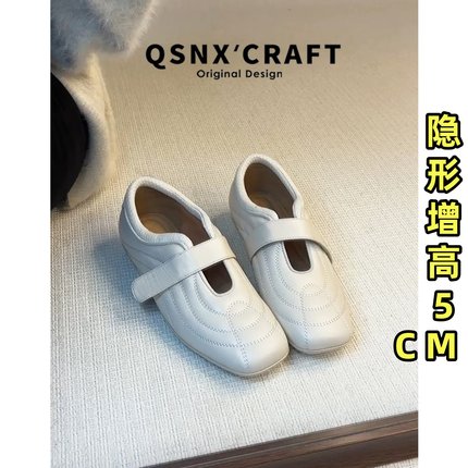羊皮版~内增高德训鞋女2025新款魔术贴芭蕾舞软底单鞋休闲小白鞋