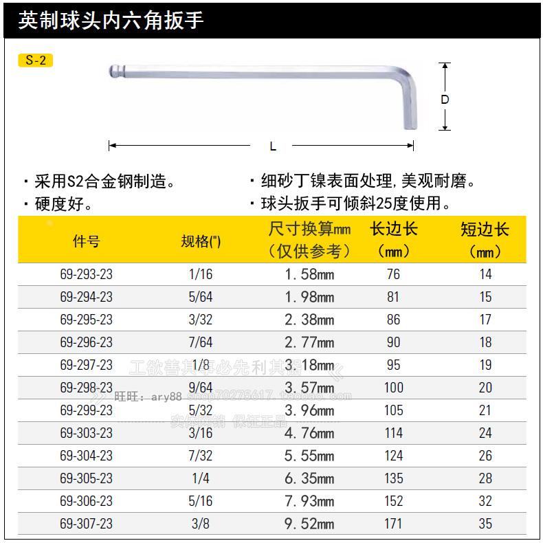 史丹利英制球头内六角扳手1/16 5/64 3/32 7/64 1/8 9/64套装组套