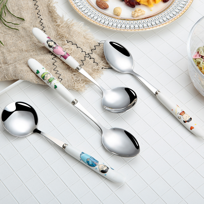304不锈钢勺子创意卡通家用吃饭可爱个性成人儿童长柄汤勺调羹